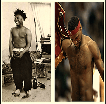 What of LeBron James? In his game and style, his physique and narrative, we see potential fathers: Karl Malone meets Magic Johnson, Magic Johnson meets Michael Jordan, Scottie Pippen meets Karl Malone meets Magic Johnson meets Michael Jordan meets Julius Erving (what?) or my favorite, Charles Barkley meets Scottie Pippen. We badly want our basketball history to evolve the way humans did…Neanderthals to Cro-Magnons to the beings we are today—crawlers, hunched over walkers, upright bipeds, jumpers, runners, dunkers. Oscar Robertson to Magic Johnson to Penny Hardaway to LeBron James to Shaun Livingston—wait, scratch that last one. This continuity is what we crave.