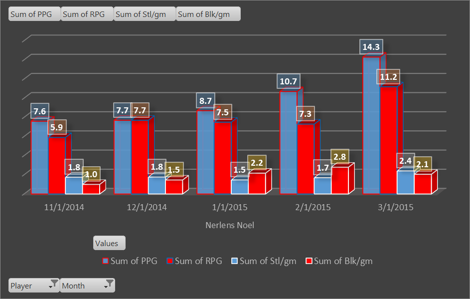 Month over month progress for the ever-rising, ever-evolving human oil spill (that’s a compliment!), Nerlens Noel