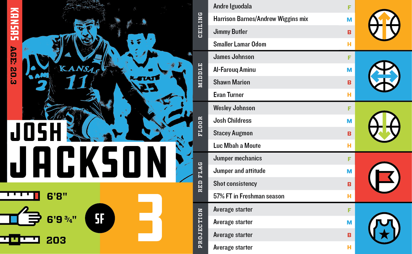 Bug: With the way the NBA is evolving to a smaller, up-tempo game, Josh Jackson seems to be a perfect for today’s game. When you watch him play, the thing that stands out is the variety of ways he can impact the game. He is able to do a bit of everything on the court, both offensively and defensively. The way Kansas used him ranged from post ups to slashing to running the break and giving the ball up to teammates for easy finishes. Mr. Jackson also shot a respectable 37.8% from 3 during his freshman season on one of best teams in the nation. While his offensive game has a good foundation and room for growth, the thing that has many scounts salivating is the equally tantilizing potential on defense. The kid flat out gets after it on the defensive end (1.7 spg & over a block a game), while also possessing the ability to guard 2-3 positions. The lackluster FT shooting (57% at KU) and unconventional shot mechanics could hold him back early in his career, but his impact in other facets of the game will get him a fair share of floor time as a rookie. Versatility is the name of the game for the modern NBA wing, and Jackson has it in spades.