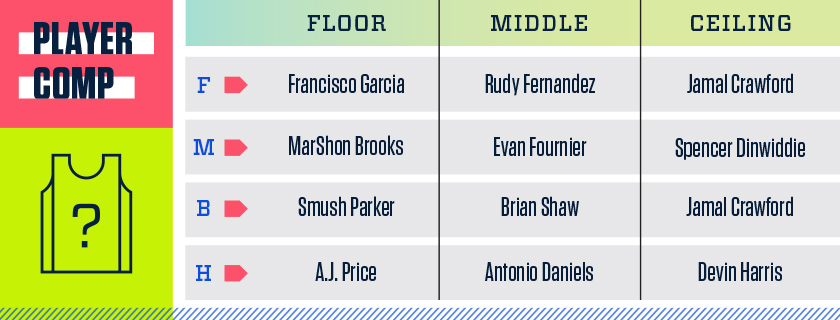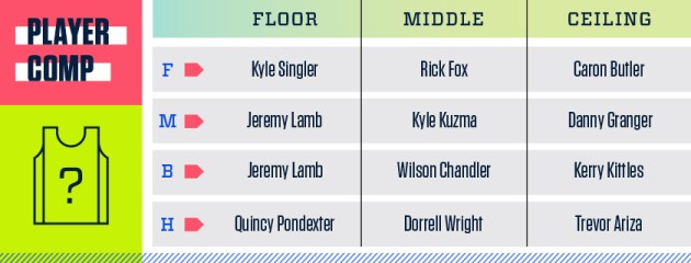 Like many of these one-and-done kids, assuming health (far from a guarantee for Porter who first sustained a back injury as a sophomore in high school), the physical foundation is obvious. He’s a massively fluid athlete for a kid his size, but I get nervous when kids try to overcompensate or prove themselves the way Porter’s done. During a combine interview, he told ESPN he was “without a doubt … the best player in this draft.” And again, while I’m reluctant to draw conclusions based on two appearances he made with Mizzou at the end of the season while returning from injury, he forced shots and looked fully immersed in a hero ball approach to offense or perhaps an acolyte of the new age “Mamba Mentality” – which can be interpreted many ways. Both the interview and the small sample shot selection are negligible, but when factoring in the injury history with a player who’s accustomed to dominating the game, the uncertainty elevates to a place that makes me uncomfortable. Assuming he regains health and commits to learning the game (his passing and playmaking need a lot of reps and improvement; particularly if he’s going to be attacking off the dribble), Porter has tools of a potential multi-time all-star – like a modern Tom Chambers or something.